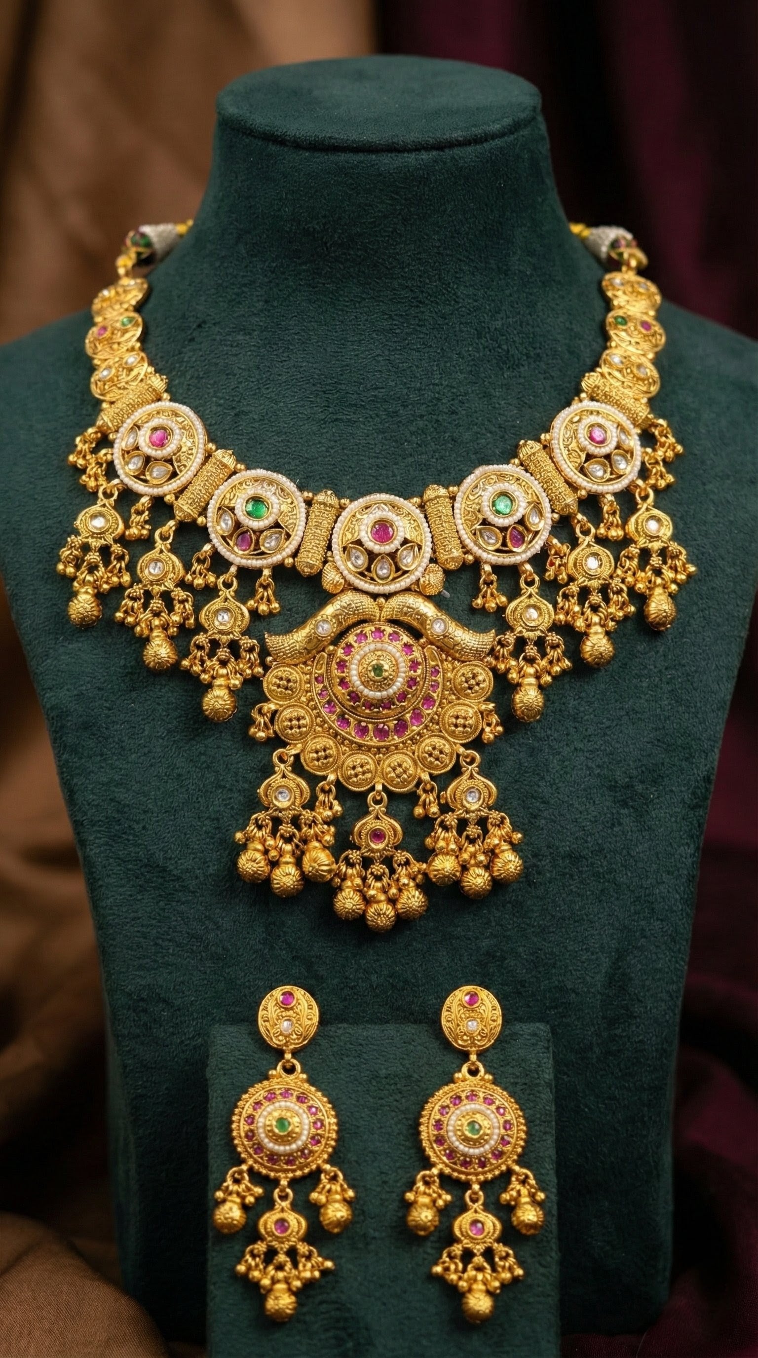 Janaki Rajwadi Gold Look Heritage Necklace Set